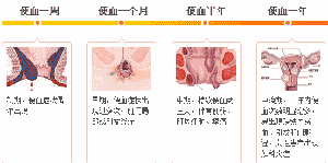 血量的多少:少量滴血、大量喷血、脓血混合大便 。