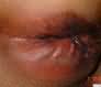 2、慢性溃疡期:创口陈旧性溃疡,刨底可见内括约肌。