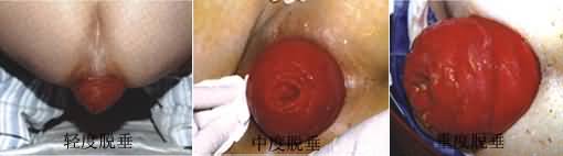 (1) Ⅰ度脱垂:为直肠粘膜脱出,脱出物呈淡红色,长3~5cm,触之柔软,无弹性,不易出血,便后可自行回纳。