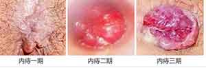 内痔:大便出血,肿物脱出,疼痛,瘙痒,便后自行回纳,便后出血比初期少。按其症状轻重程度分为一期,二期,三期。